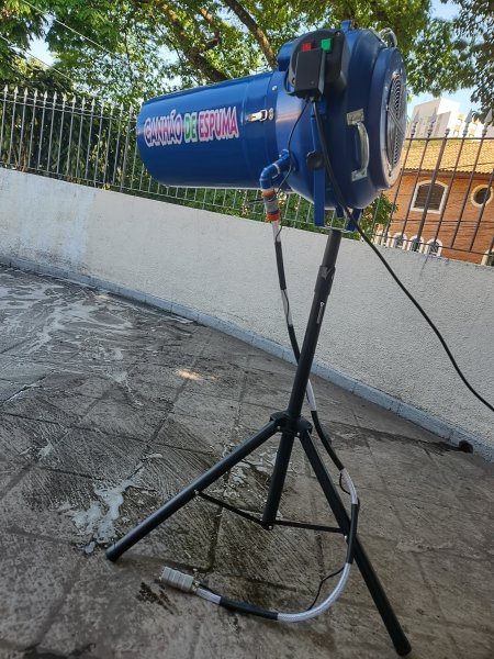CANHÃO QUE DISPARA ESPUMA PARA LOCAIS ESPECÍFICOS (QUADRA DE FUTEBOL DE SABÃO, TOBOGÃ, LONAS DE ESCORREGA, ETC.)