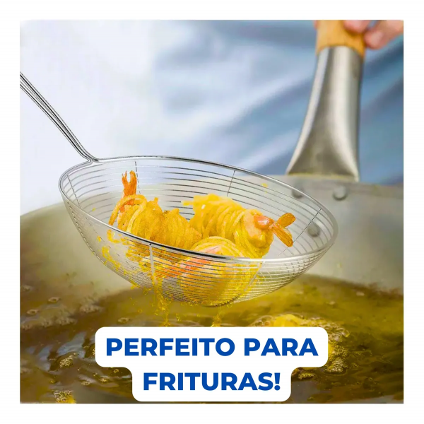 Escumadeira Fritadeira De Inox Redonda - 32cm