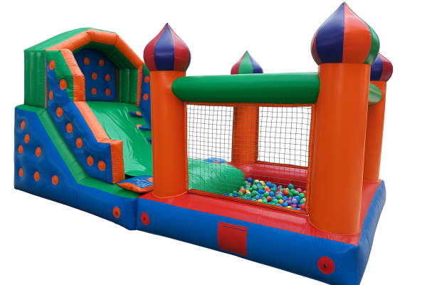 ESCORREGADOR INFLÁVEL PEQUENO COM POSSIBILIDADE DE ESCORREGAR DENTRO DE UMA PISCINA DE BOLINHAS