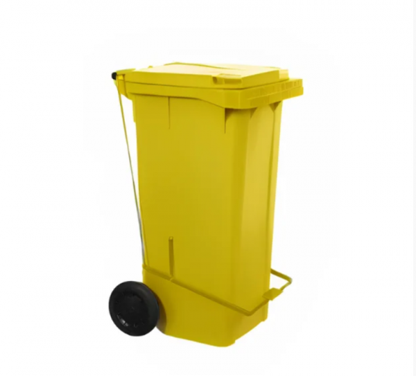 Lixeira Plastica 120 Litros com Pedal e Rodas - Amarela - Metais