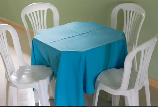 Kit Mesa Quadrada com 4 Cadeiras + Toalha Azul Claro
