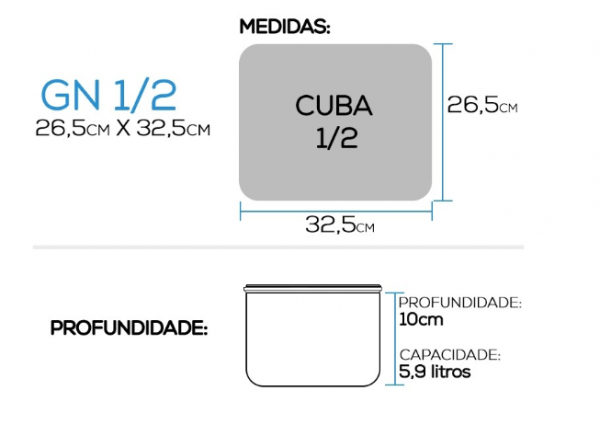 Cuba Gastronômica Aço Inox Para Buffet Gn 1/2×100mm (325x265mm)